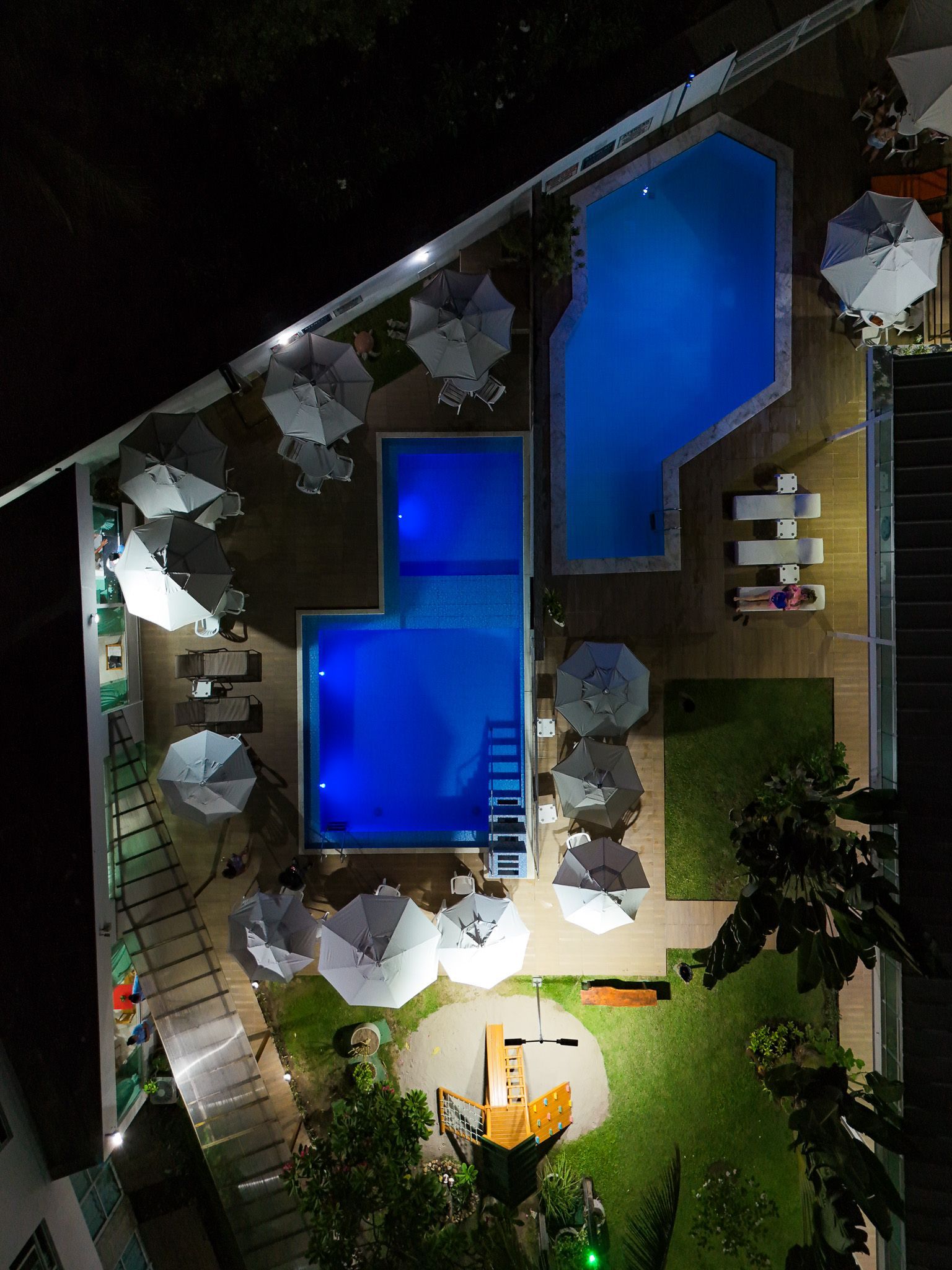 A Vivenda dos Corais conta com 2 piscinas com cascata e iluminação em led, inclusive para crianças.
