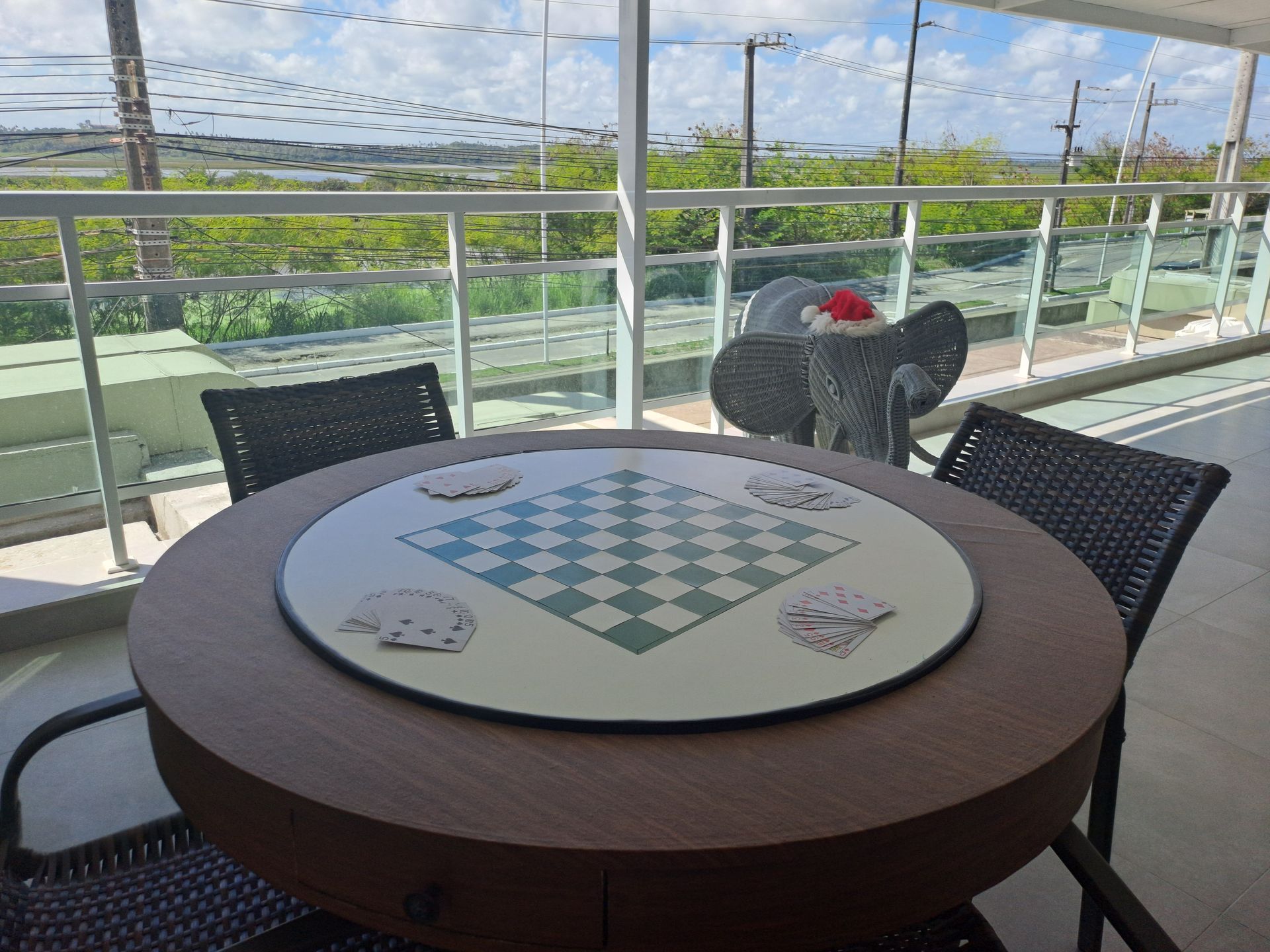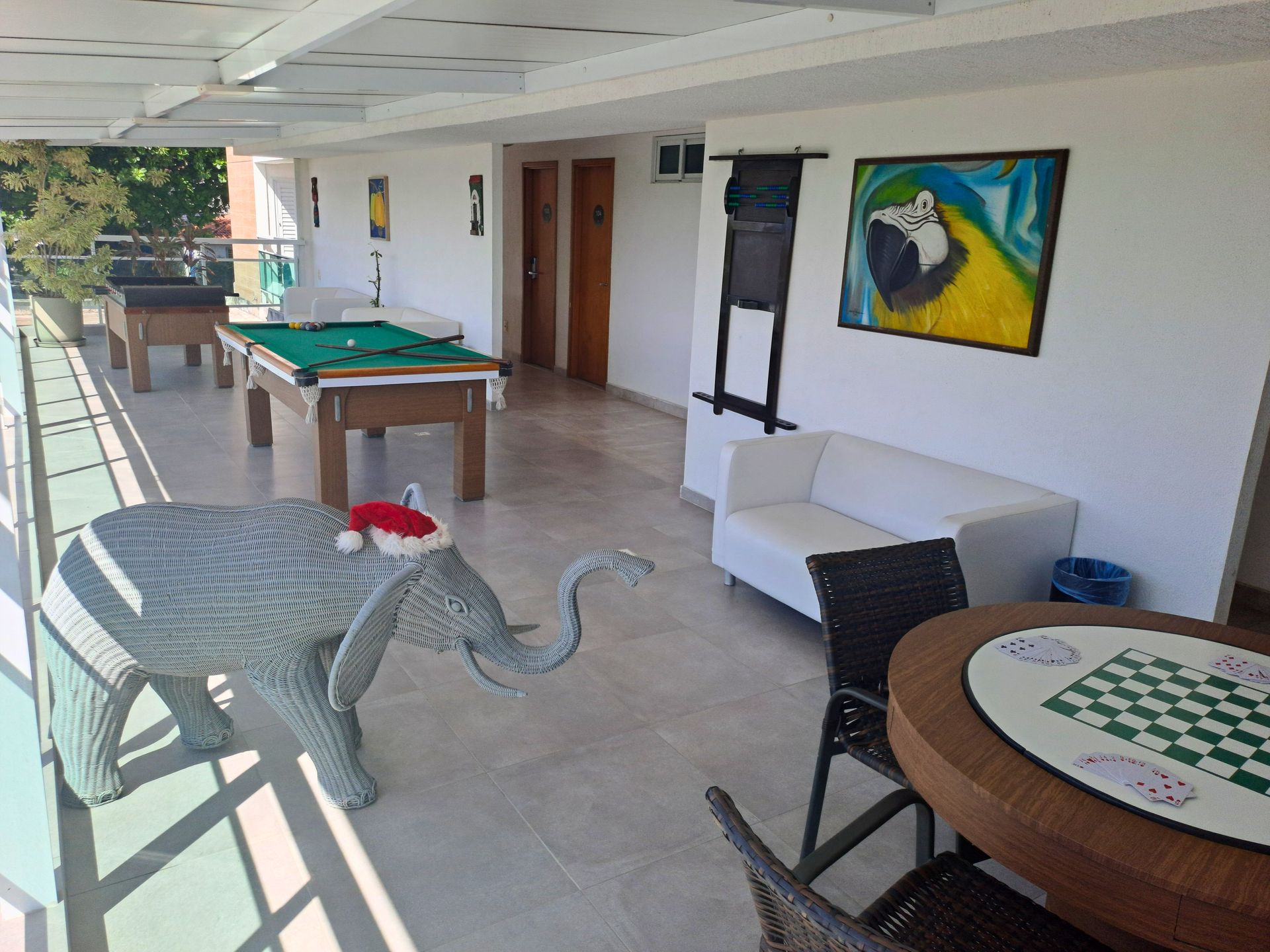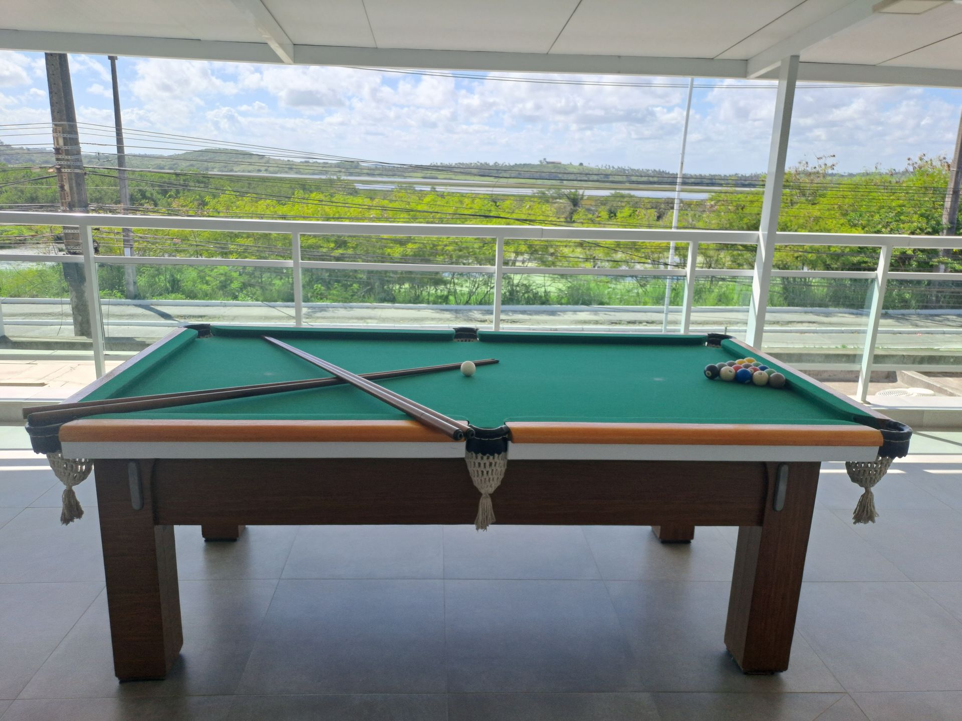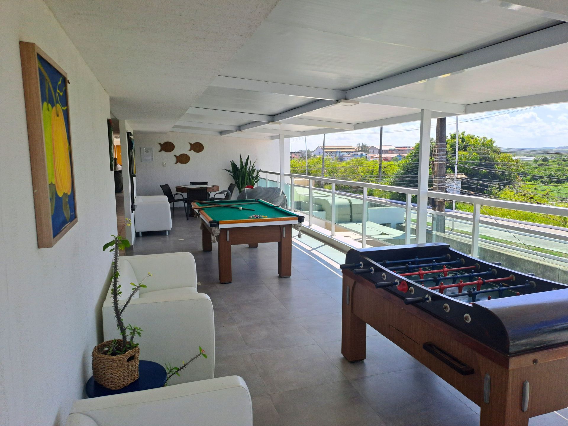 Espaço com jogos para desfrutar com a família e amigos, possui um pebolim (totó), sinuca, mesa para jogo de baralho (disponibilizado), dominó (disponibilizado), entre outros jogos de salão. Vista maravilhosa do pôr do sol.
